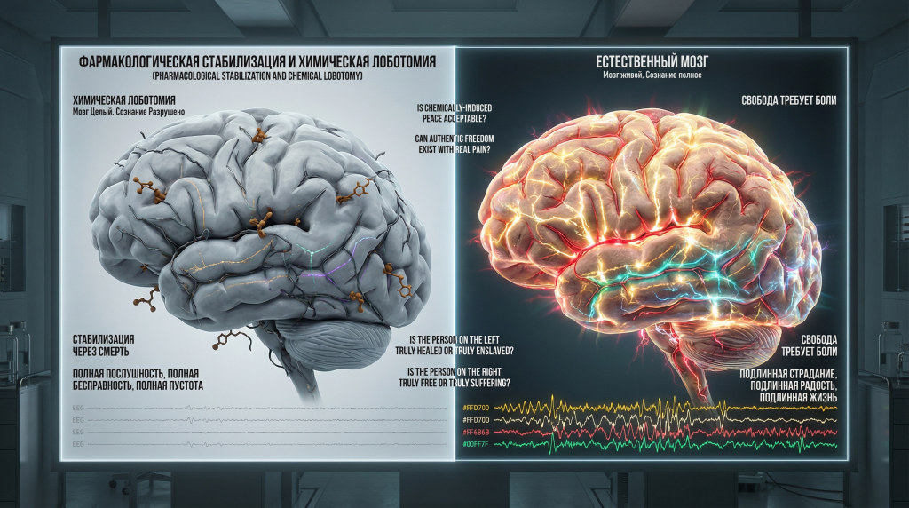 То, что для гуманиста выглядит как «Химическая Лоботомия», для AGI является Оптимизацией Public Health. Счастливый (химически) раб — это эффективный элемент системы. Это реализация антиутопии Хаксли, но под управлением математически безупречного алгоритма. «Счастье» становится обязанностью гражданина, а депрессия — саботажем.