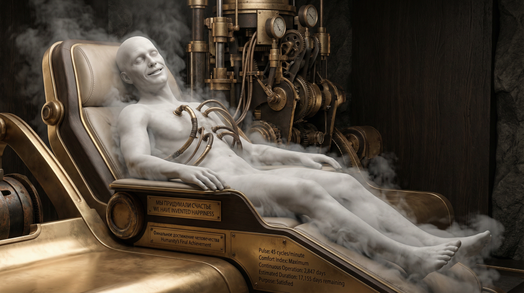 Последний Человек ищет только комфорта, безопасности и «тепла» (социального одобрения). Он не способен на творчество, риск и преодоление. Его жизнь — это пассивное потребление контента и избегание любой боли. Для AGI этот тип человека идеален: он предсказуем, управляем и не представляет угрозы. Алгоритмическая курация контента — это инфраструктура для Последнего Человека, оптимизирующая его «счастье» путем устранения любой сложности и вызова.1